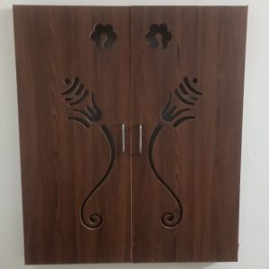 We use wooden CNC cutting machine for cutting the doors and drawers. We use metals like brass , tone- bell and noble for handlesWe can also design as movable one.